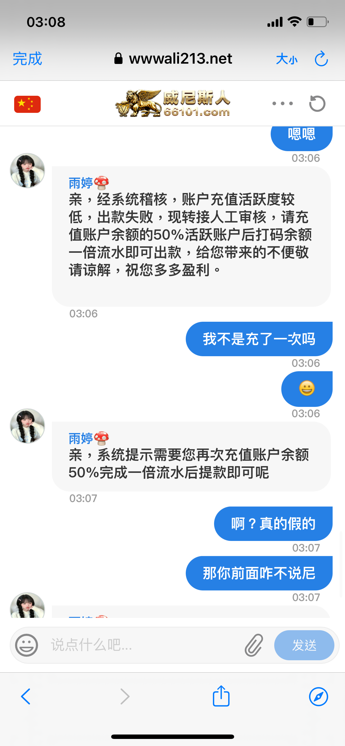 每天签到8.8那个,他奶奶个泔水憋提288冲了150打到600还想黑老子