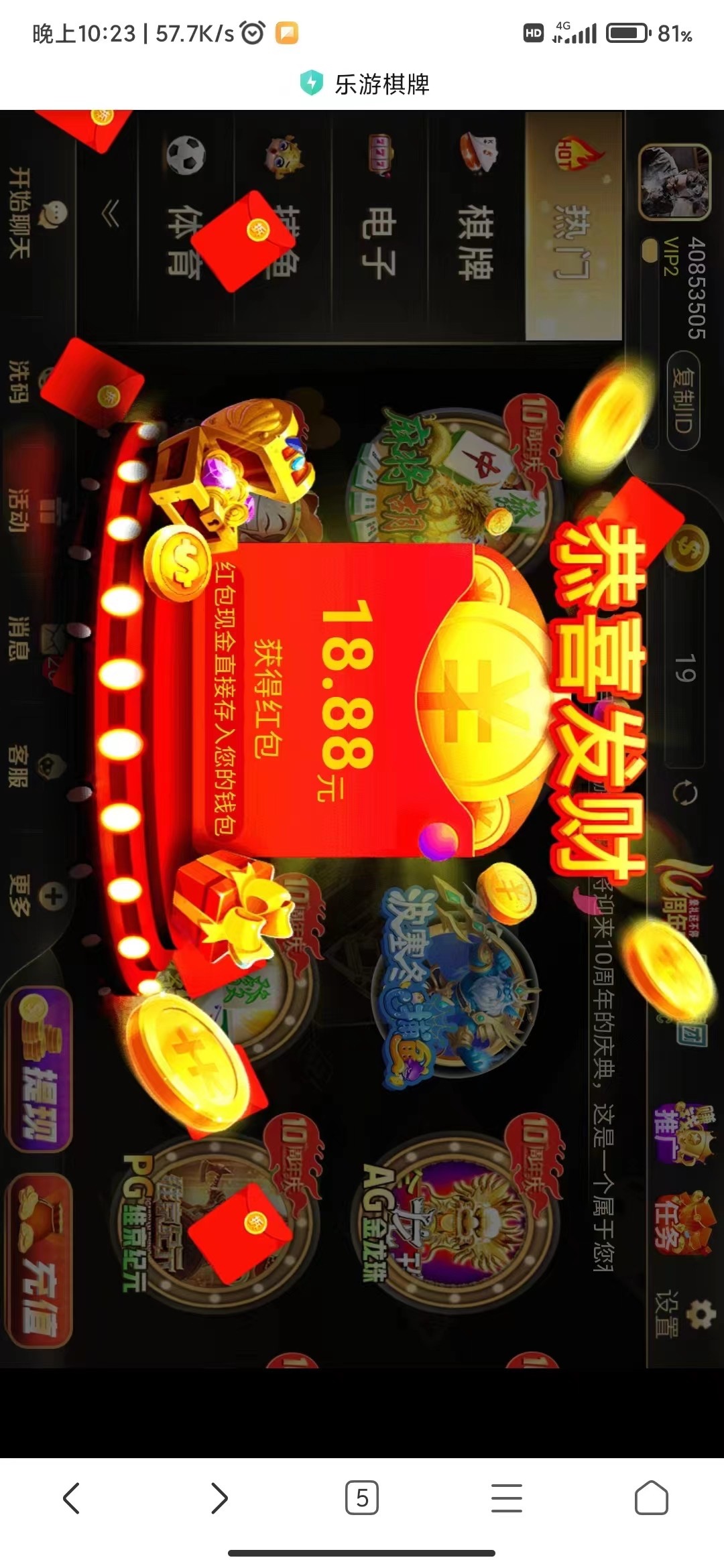 老用户登录回馈红包,彩金应该是部分人有吧。