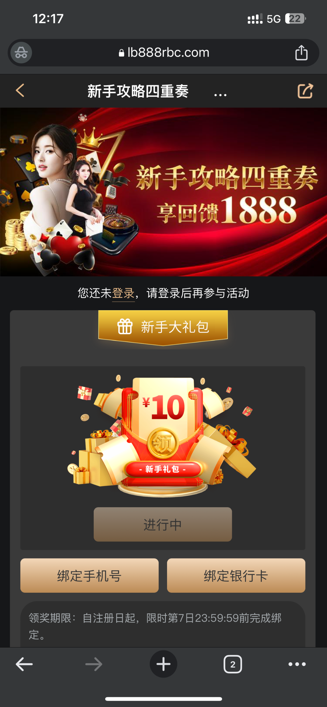 注册绑定银行卡和手机号,活动自助领取10彩金