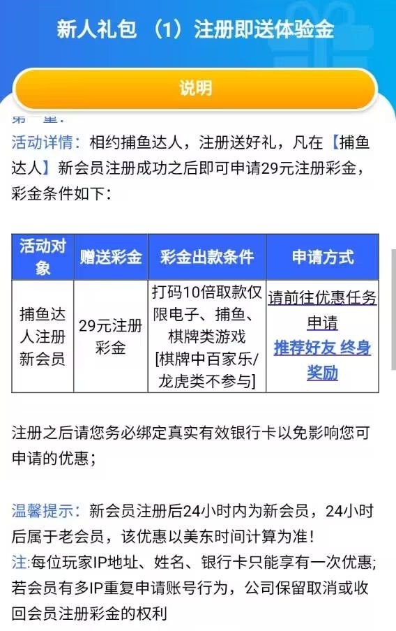 新用户注册绑卡优惠自助申请送29/10倍打码提现。