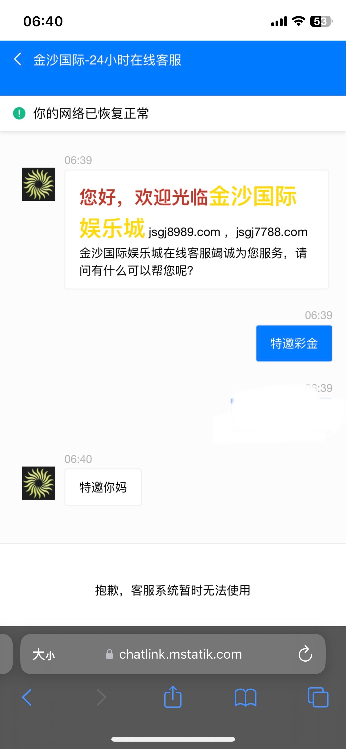 客服都没有,你发你妈个臭骚逼