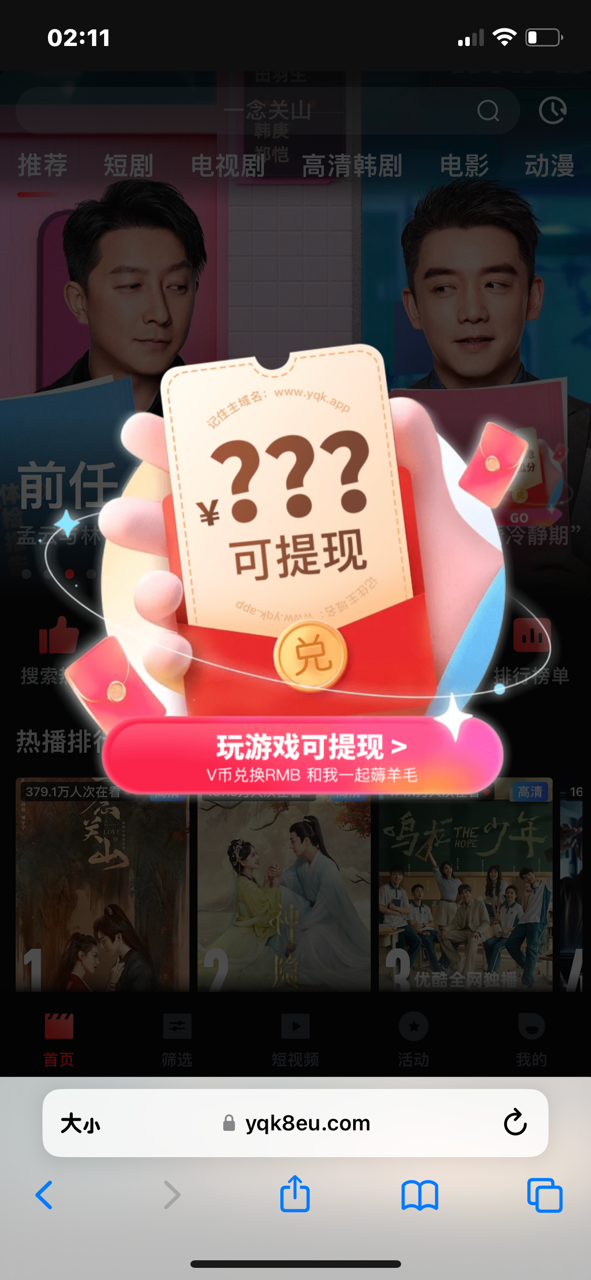 出款就封。但是他们这个看电影软件还不错,基本上优酷,腾讯。爱奇艺饿vip内容里面都有。还不卡