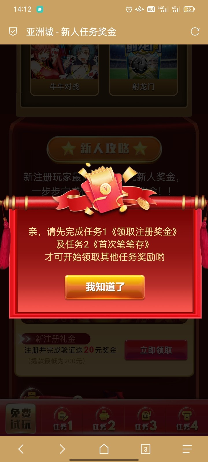 注册绑定好退出登录  输入密码登录的下面有个新手试玩  点新手试玩进去领
