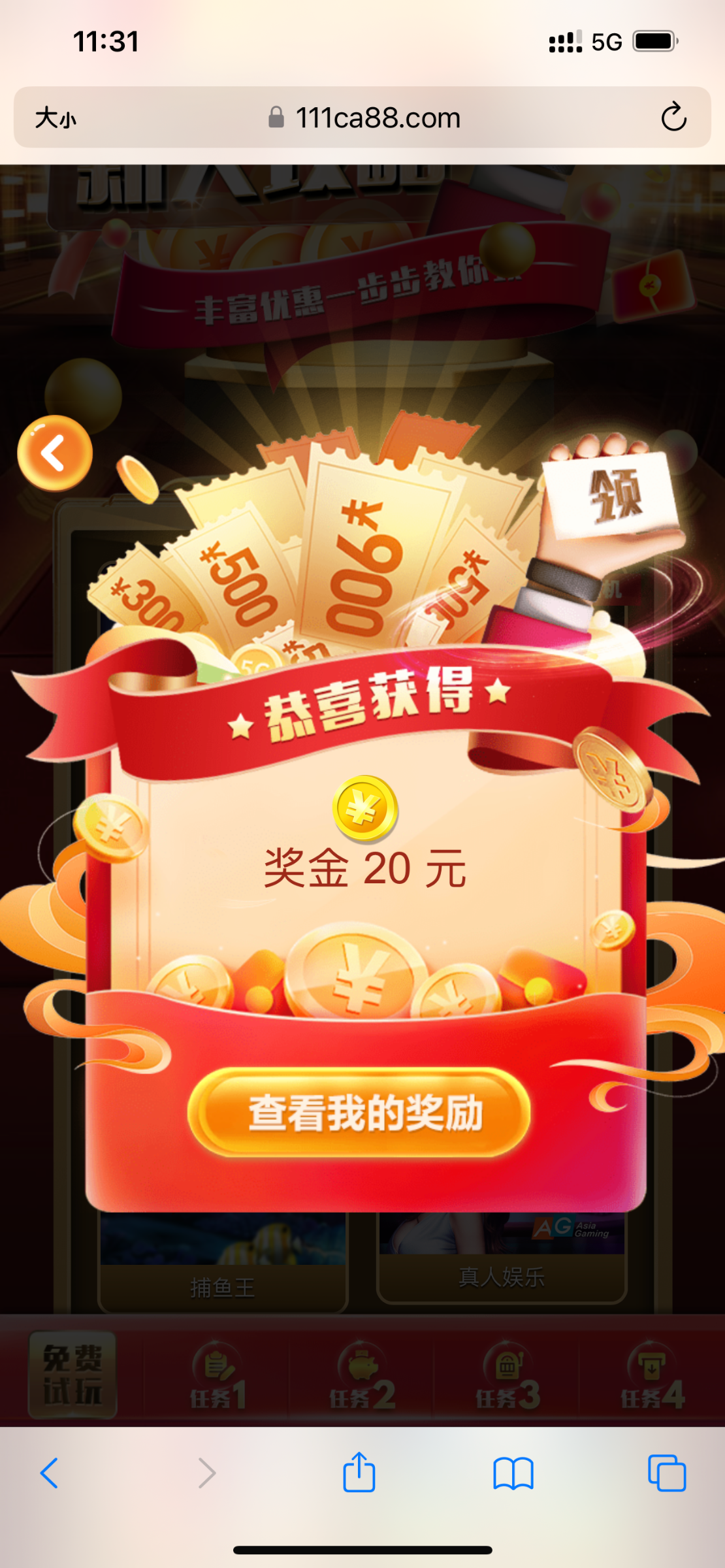 注册绑卡绑手机号 注册绑定好退出登录 输入密码登录的下面有个新手试玩 点新手试玩进去领  然后在我的优惠领取 不限制游戏 10倍  最低200提现