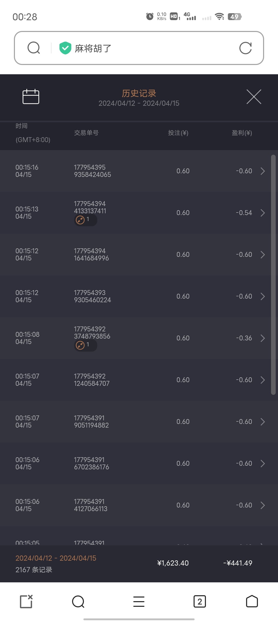傻逼麻将2100笔没进过免费,0.6-1.8-2--3块都没进过,整整两千笔没进胡,这傻逼台子连续杀了我四个月了,1月份到现在每次都是赢一次一千多然后连续十几天都是输的,连续四个月每个月都是这样