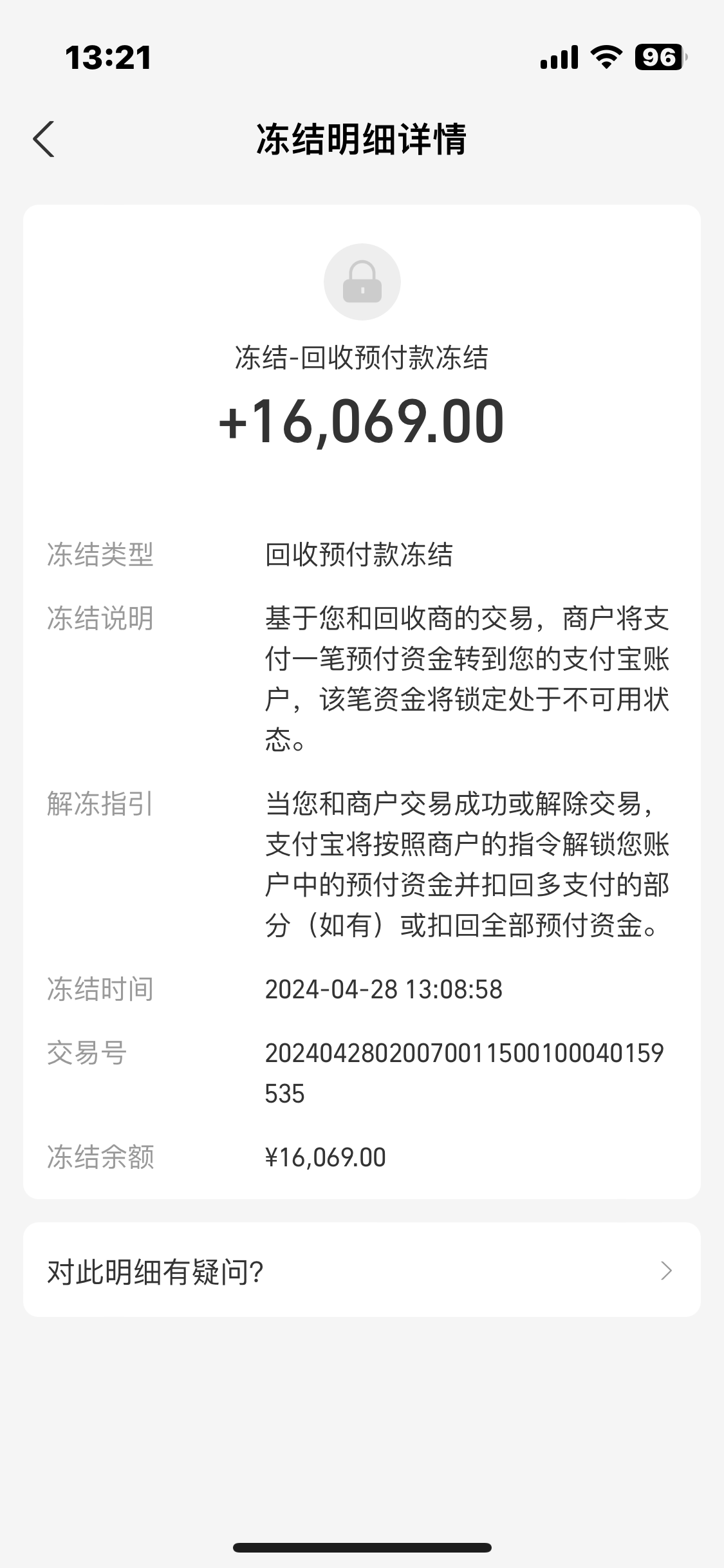 他妈的,冻结的钱,交易成功才能提现