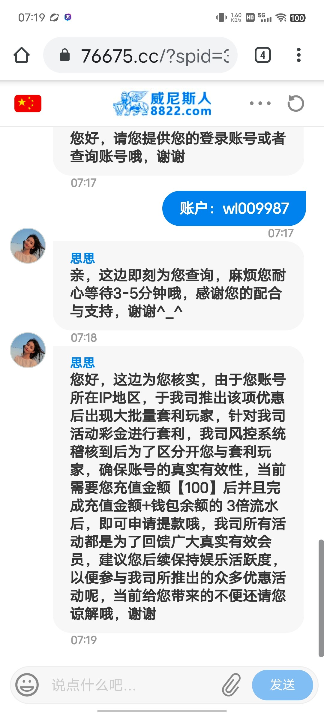 司马8558,签到摇两下就进免费,提现叫冲100打3水,看有能出款的我就冲了,冲完死活不出免费