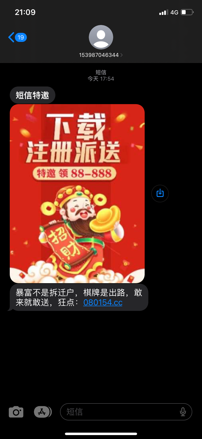 有短信的可以去看看 之前就收到过 今天进去看有18.88领 不知道能不能出款 我挂壁了 链接直接看短信图
