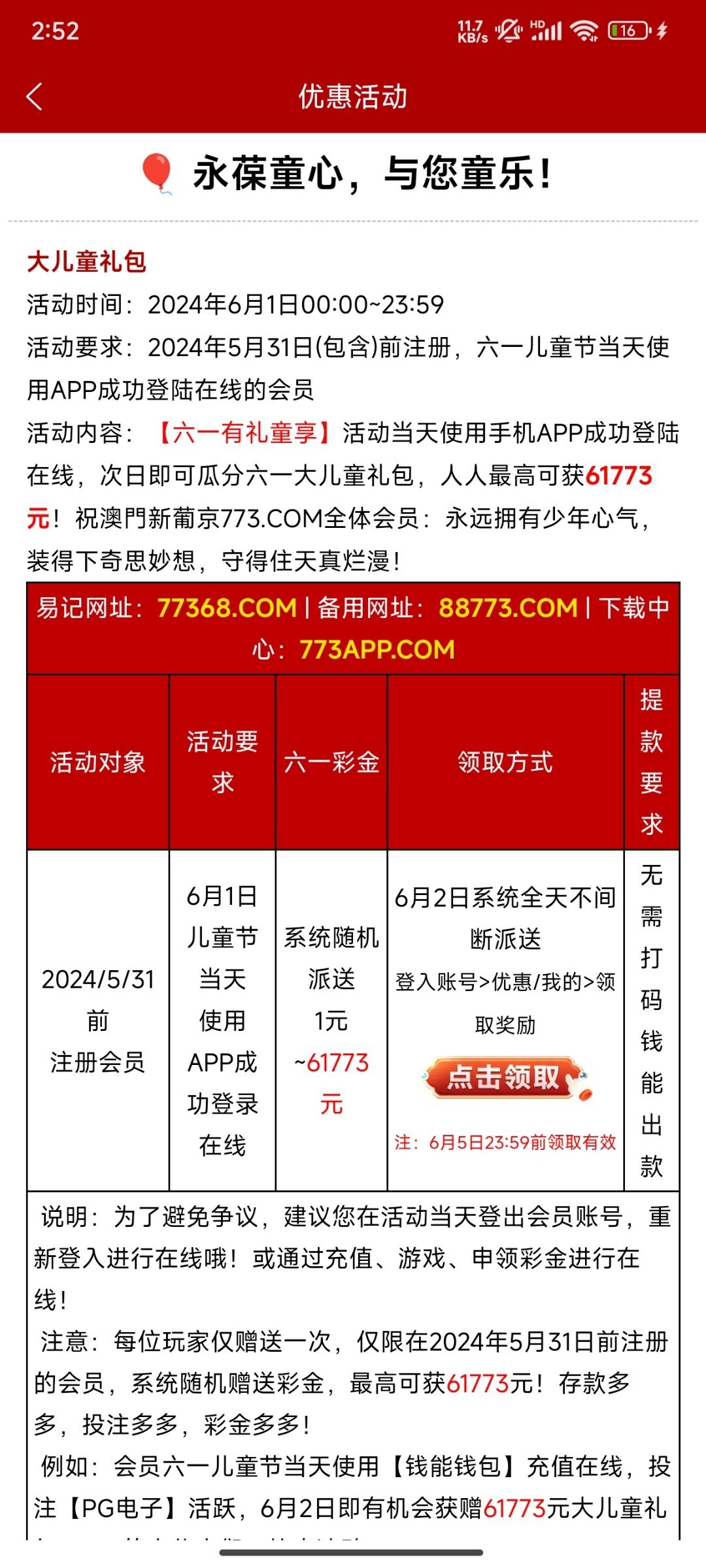 新葡京773 六一儿童节红包