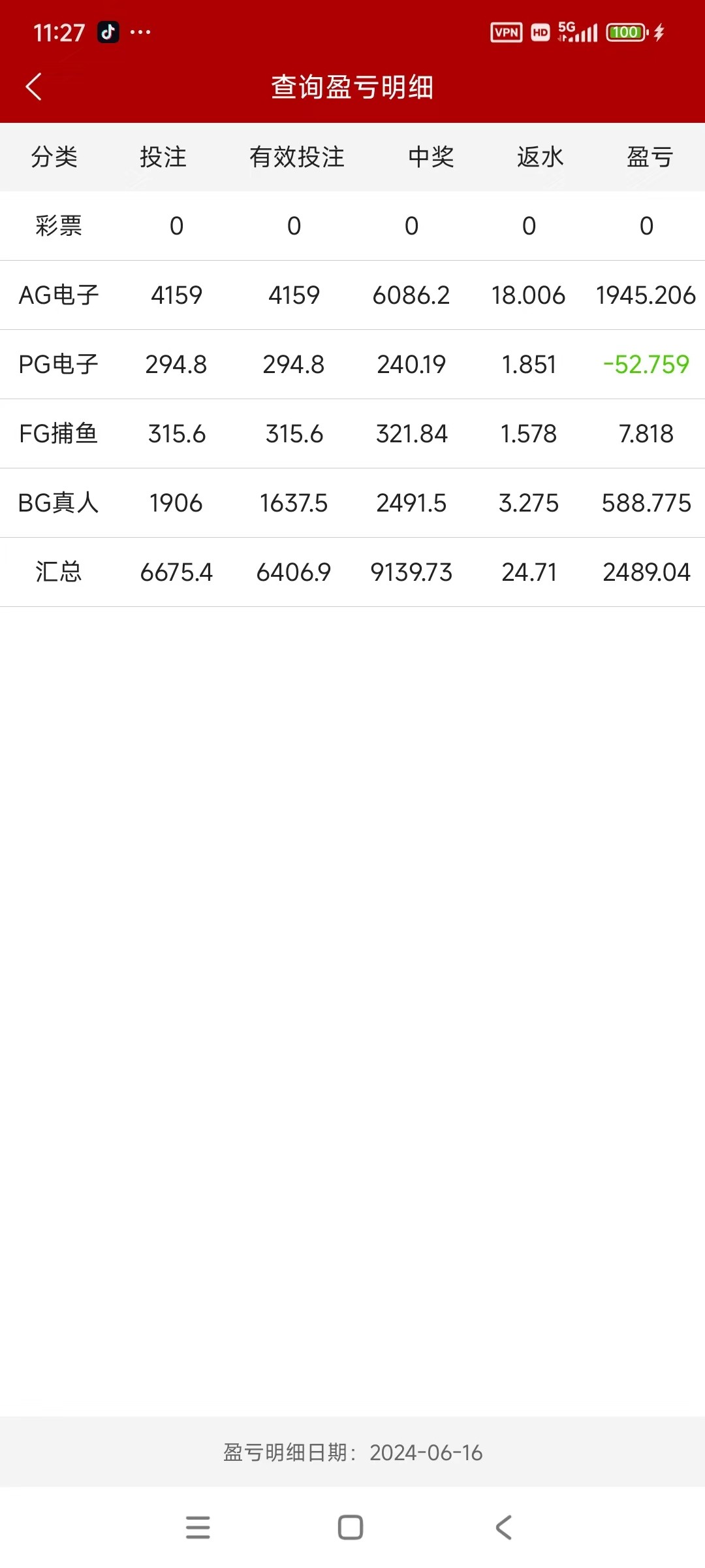 773两个号白嫖差不多7000块。看盈亏明细电子全是亏的。这个ag电子射龙门为什么赢钱呢。因为他也是棋牌类的,而且全网开奖调不了赔率。只有棋牌类的才能赢钱
