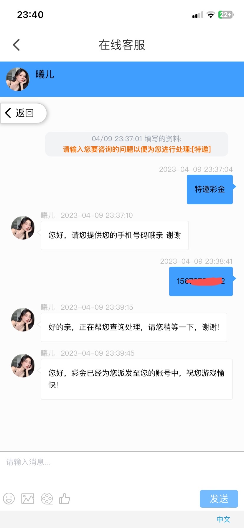 我注册了客服说没有打电话给我,我说你赶紧打啊,随后就送了58