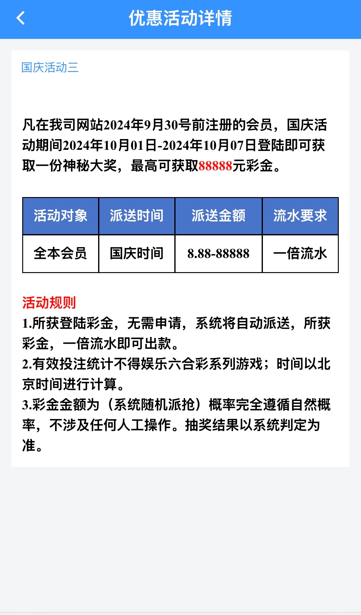 国庆登陆彩金
