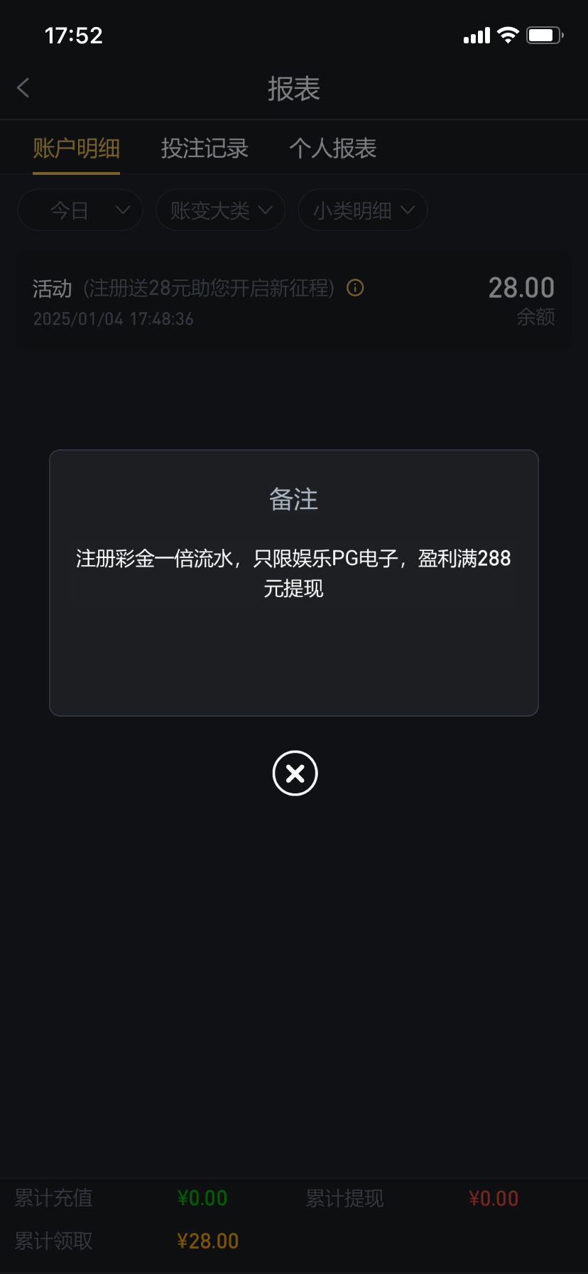 项目规则: 新用户注册优惠新人第一个自助领取28元,一倍流水限制PG电子。