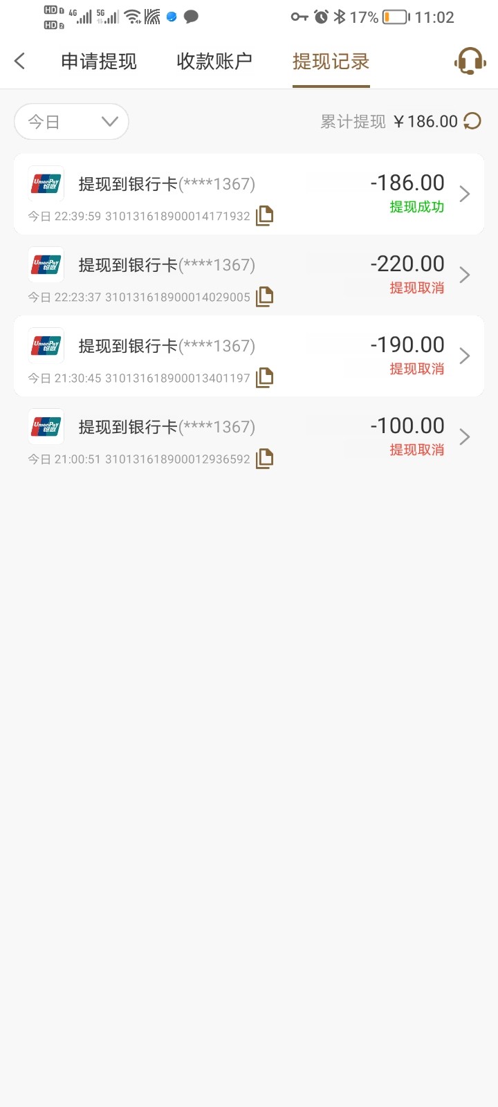 最后186提现成功,谢谢楼主