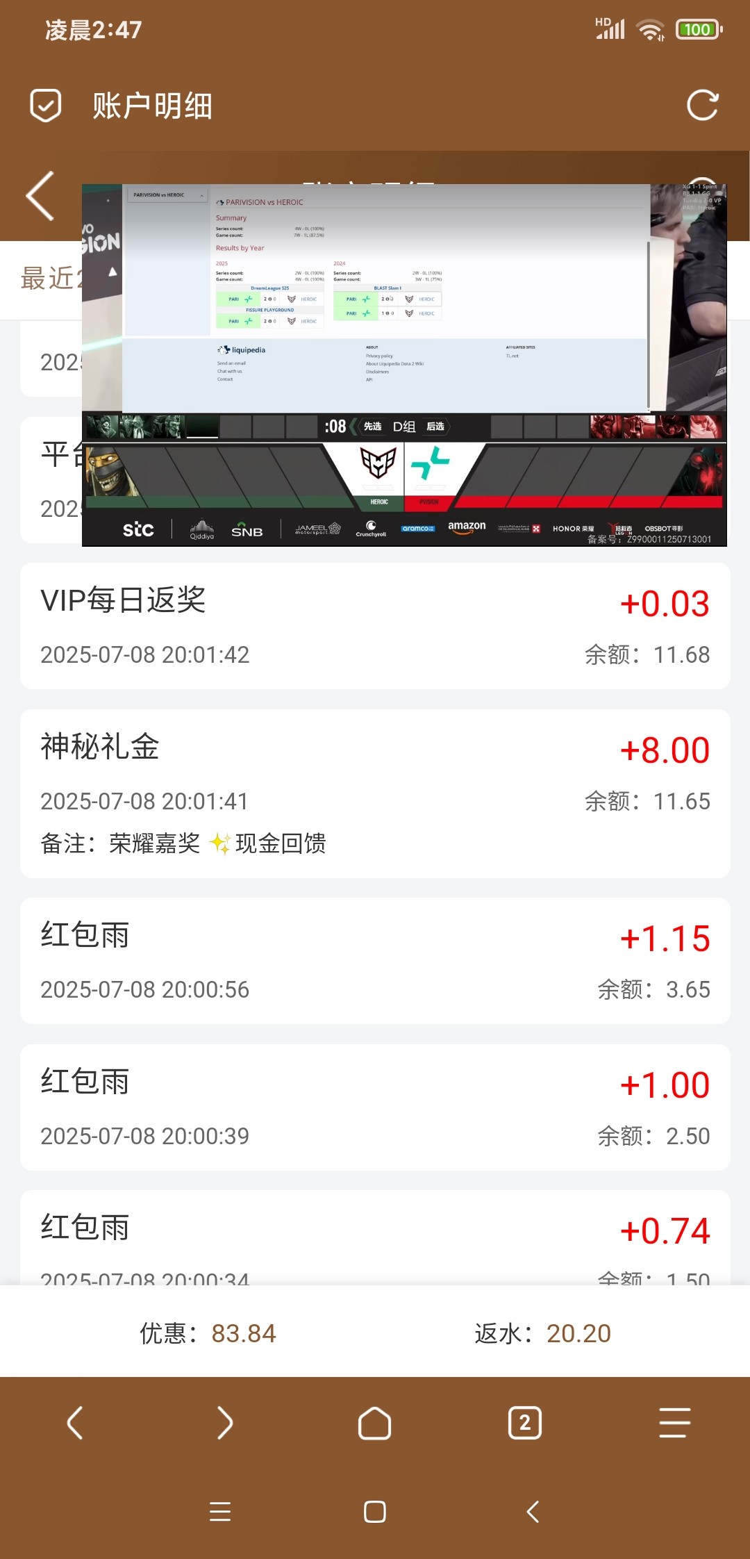不知道是充值回馈还是神秘彩金,反正给了8块上号就有