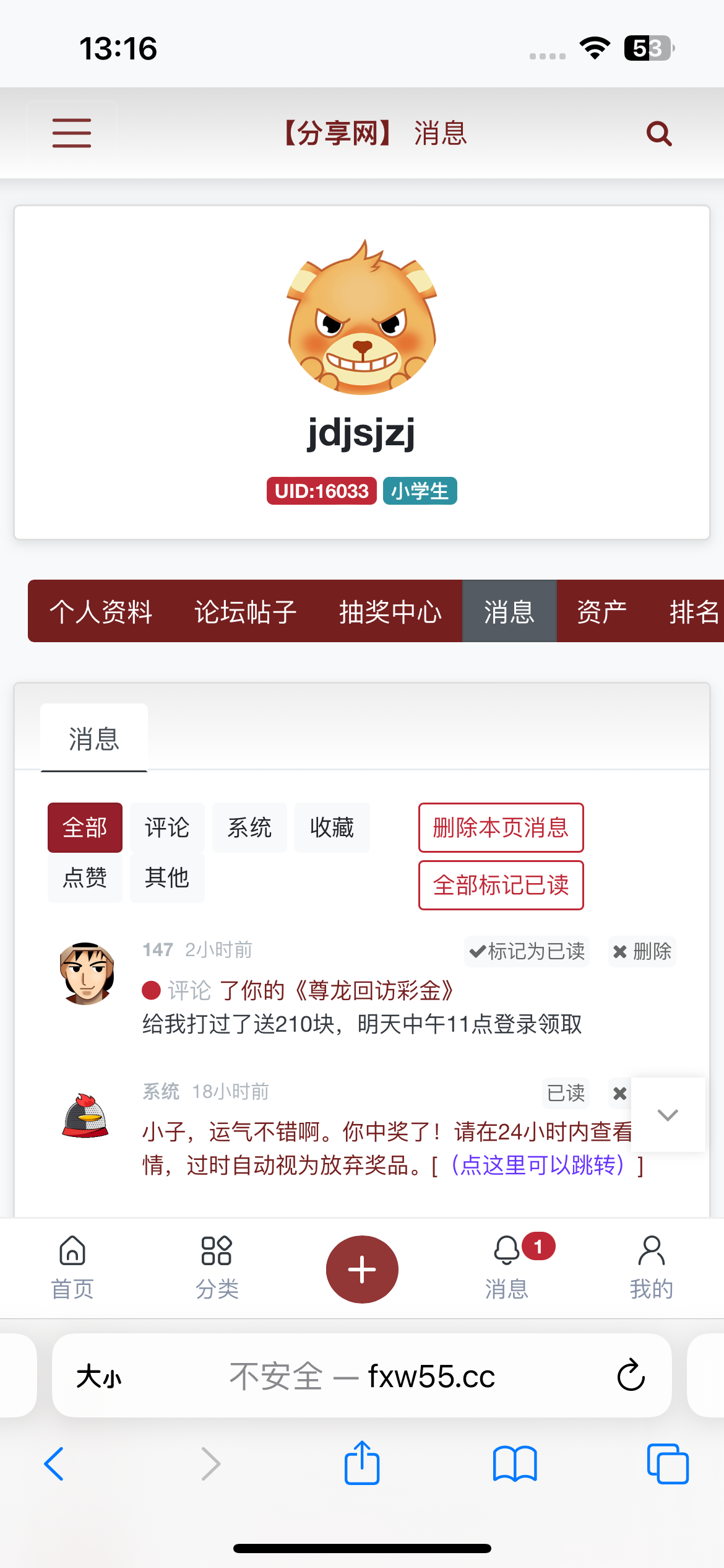 本站声明 1、本帖标题:分享网回馈中奖公告