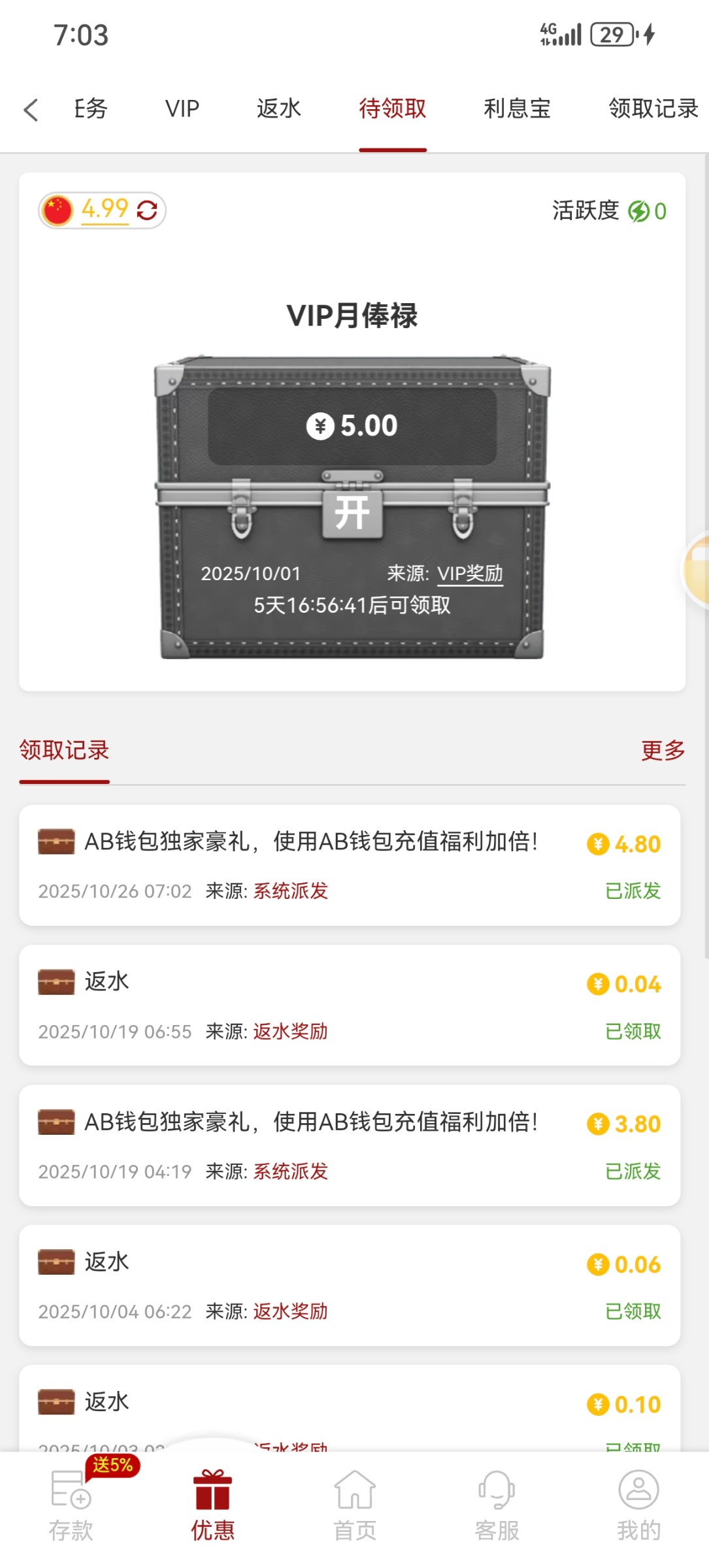 看第一个领取记录,我好久都没充值了。