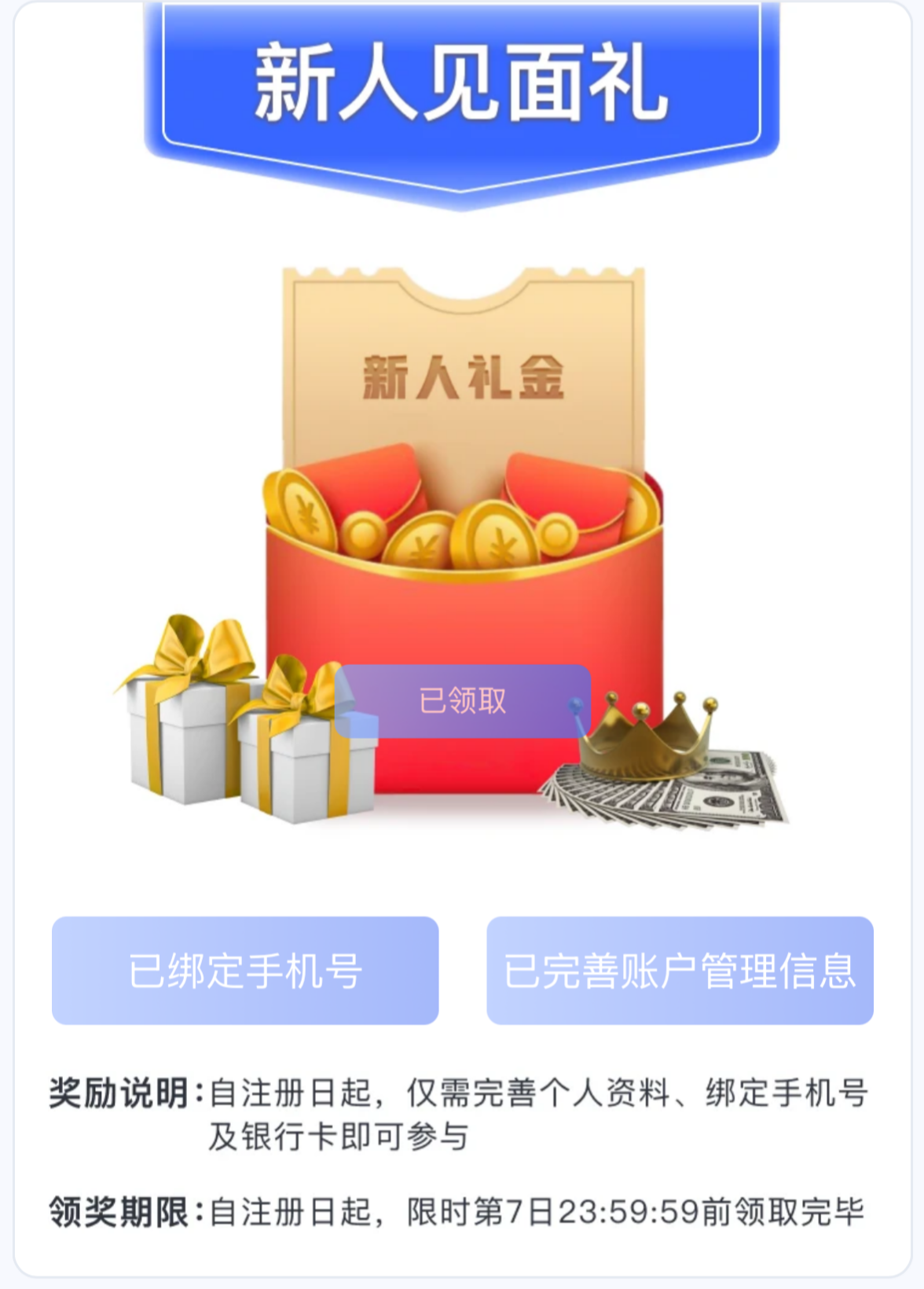注册活动绑定信息(收款,手机号)领10