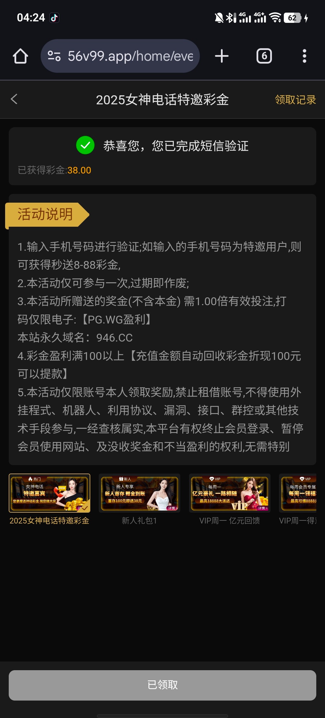 手机短信自助 领38 我没打出来