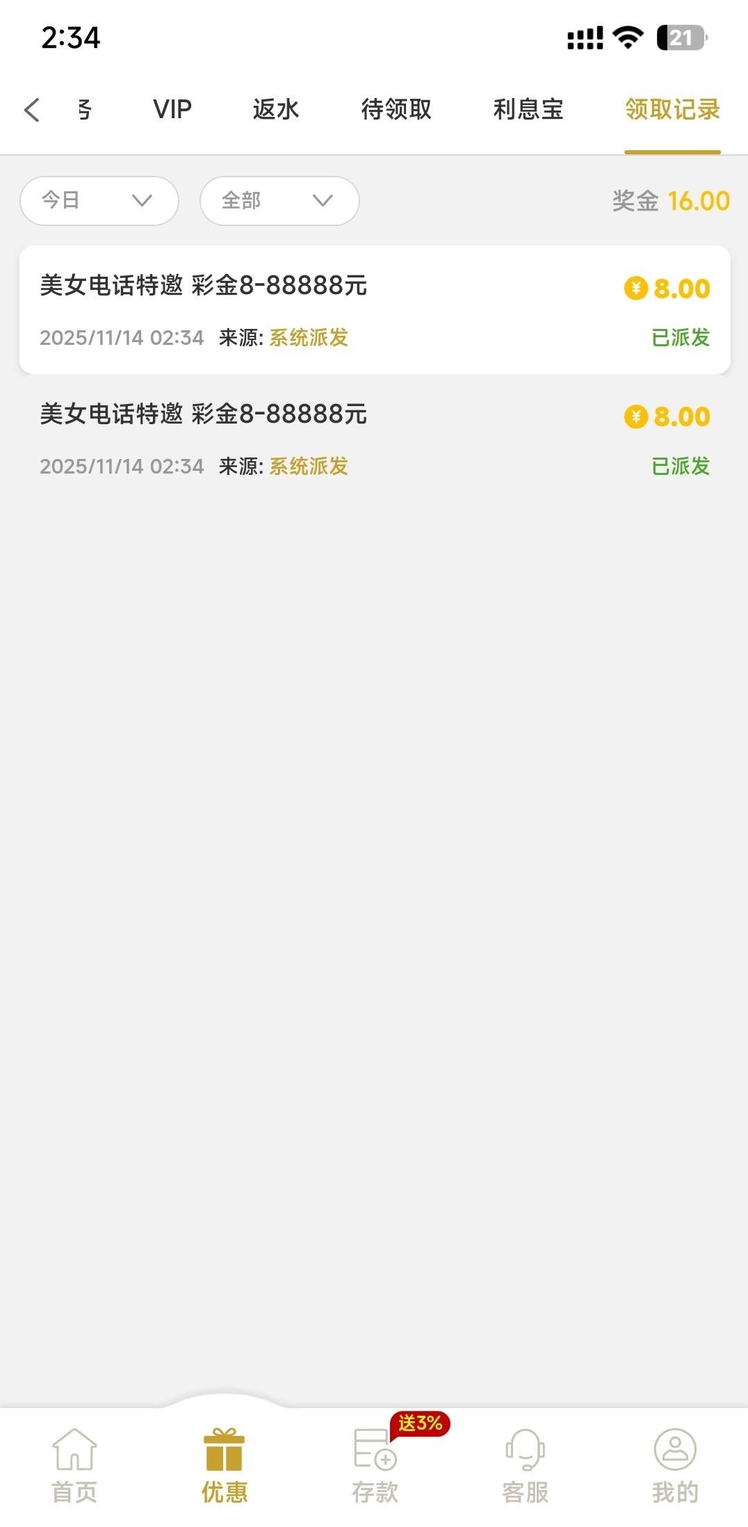 【金沙2007】——回访彩金