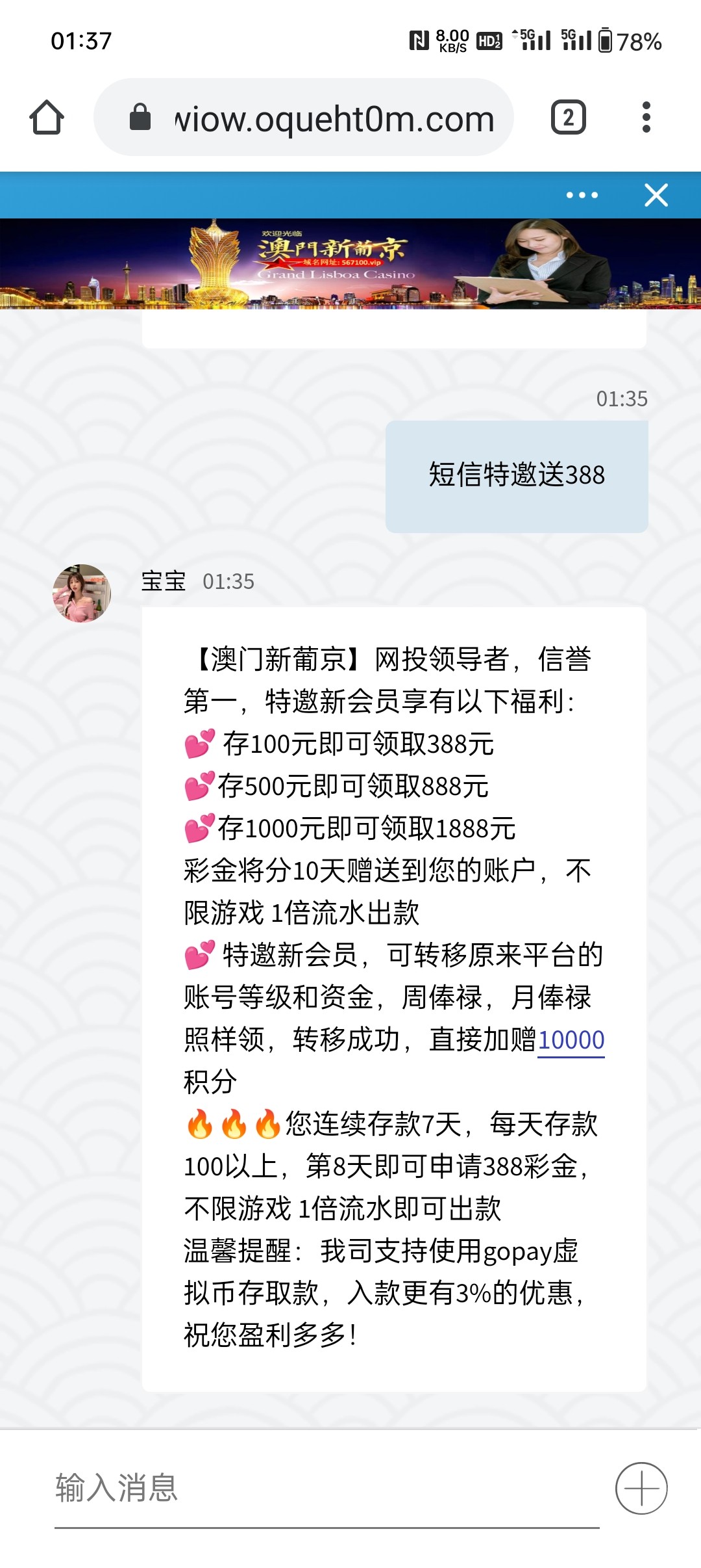 不黑发了3次短信打了两次388了