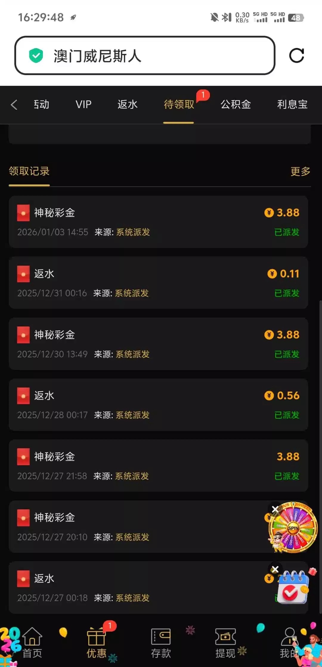 【威尼斯VV8】神秘彩金