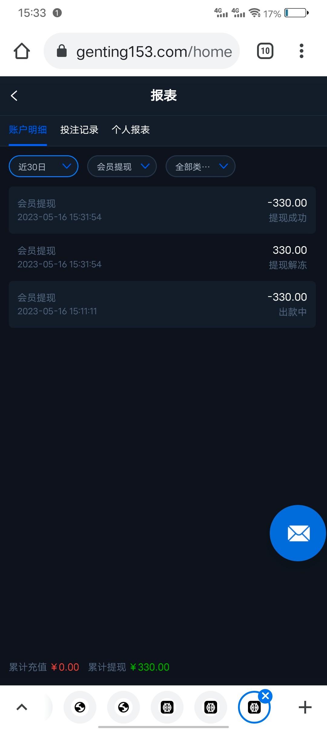 送了99到帐330
