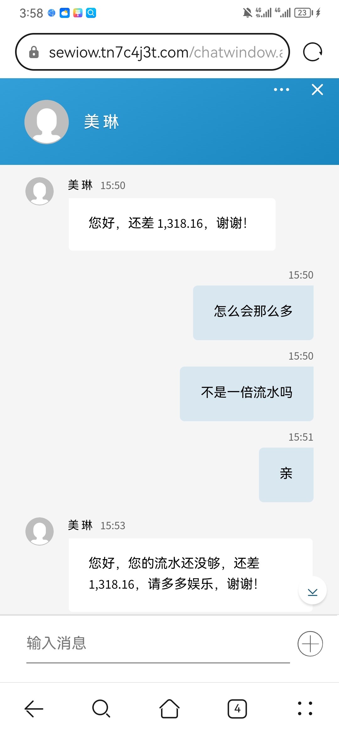 正常现象,这种模板台子都这个样,我上回玩博大提二百说我差200流水,让我打到1000提了,这不是狗庄犯贱