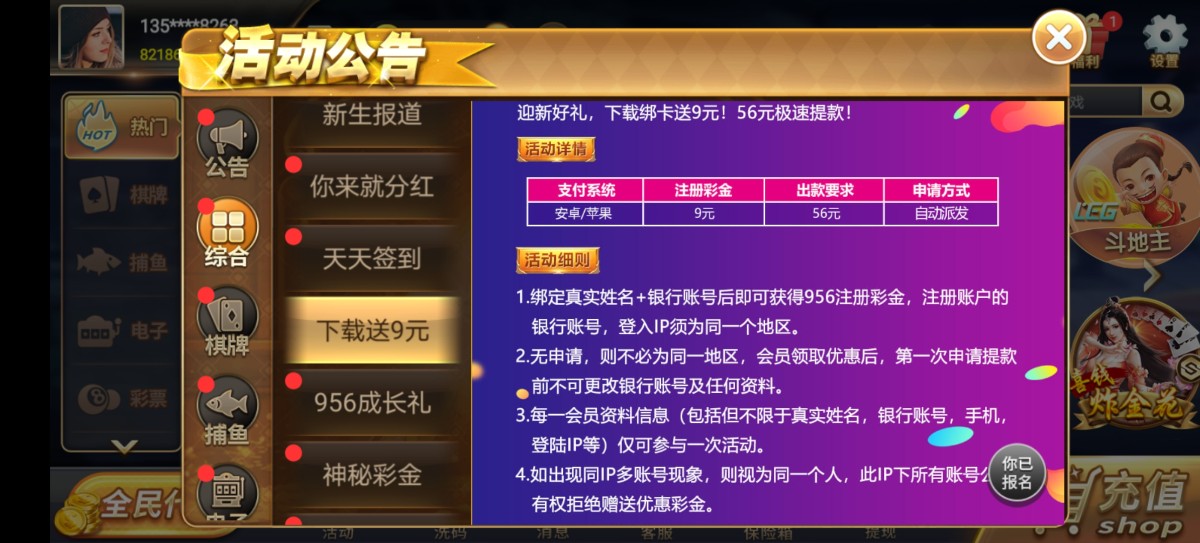 【956棋牌】--✅--送9