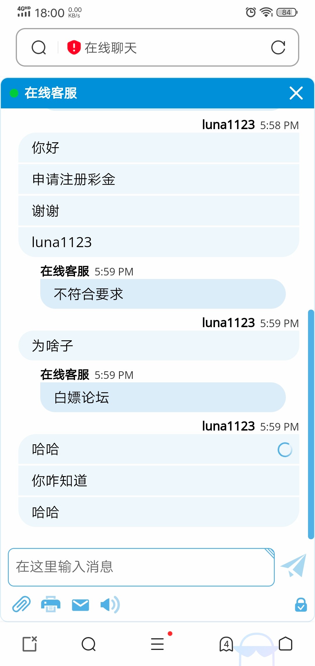 说注册礼金,客服就死了