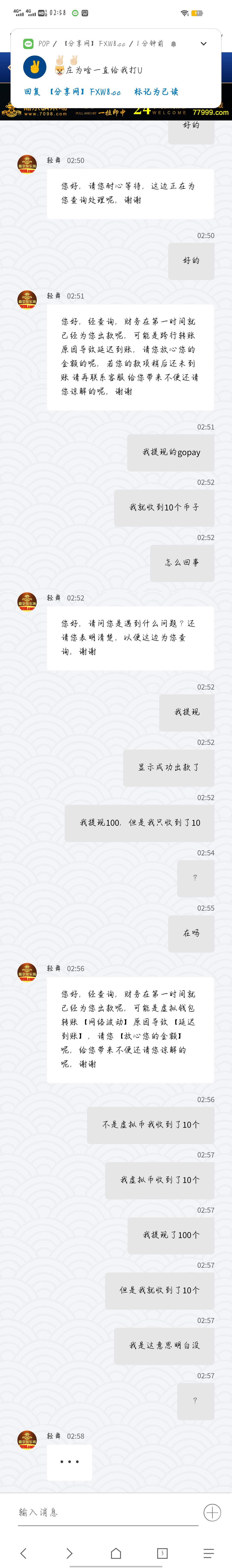 冲10块也没送彩金,打到100提现gopay,就收到10个,艹了,黑了?