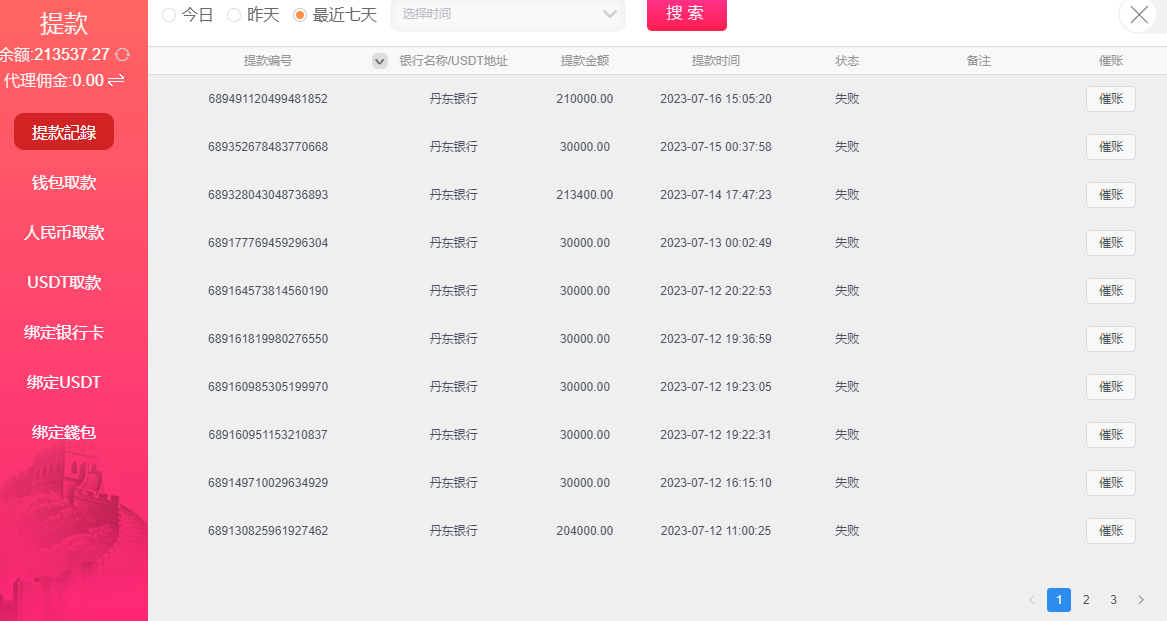 www.0766.com,7月2日首存5w,盈利7000,提款5.7w就审核不给提款,目前账户余额21w,被冻结不能转账到游戏厅,客服回复只有正在审核,是个黑台子,只能输不能赢,赢了就不给提款,代理都是用阳寿在干.